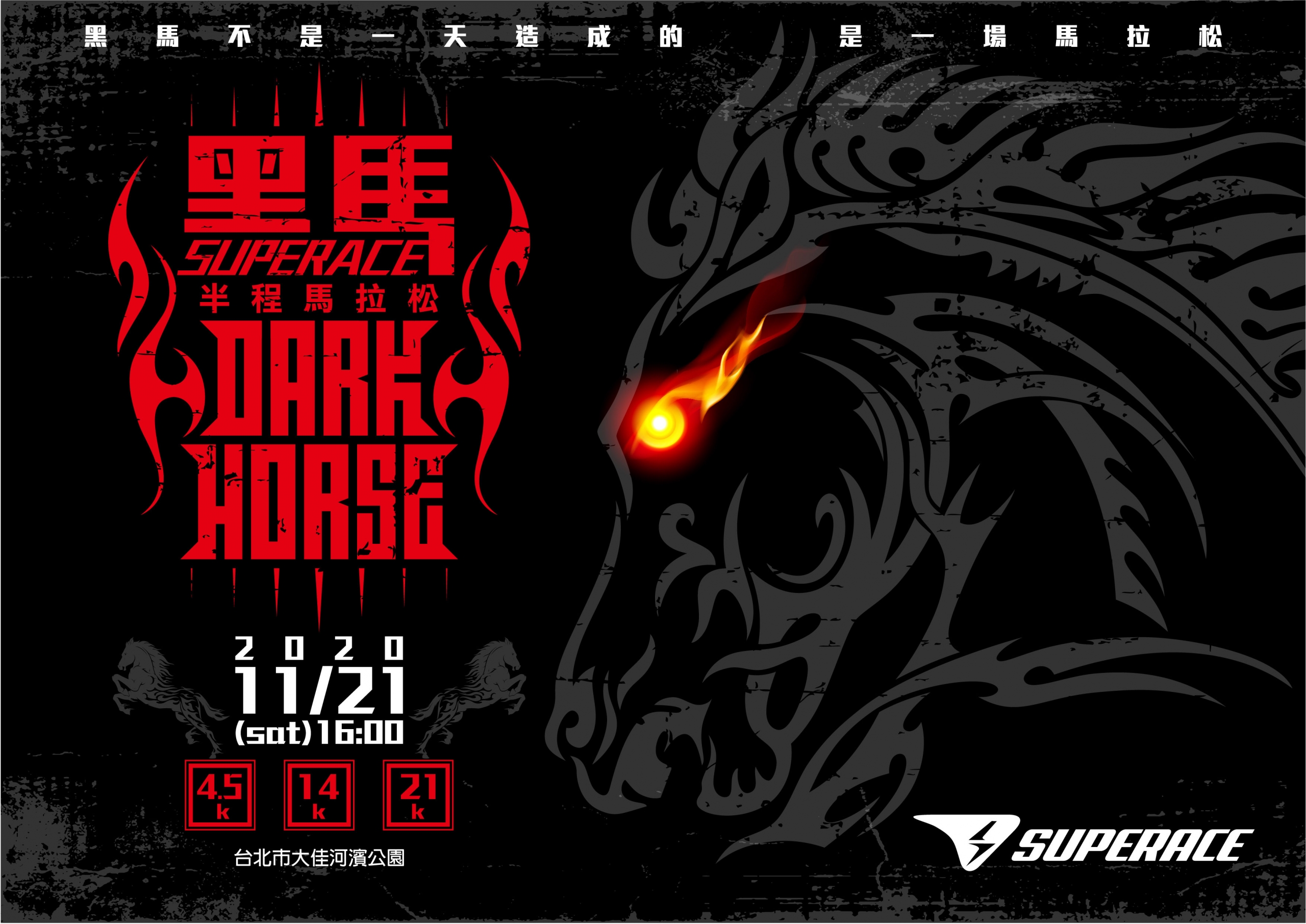 夜晚是我們的主場,速度是我們的信仰,白天我們一如既往,上班上學跟你嘻笑怒罵,晚上我們化身夜之魔俠,苦練偷跑、餵養著心中那匹黑馬。2020 SUPERACE黑馬-半程馬拉松,在疫情黑影壟罩之後,展現你的高強實力、嚇壞你的跑友夥伴、釋放你的馬不停蹄,在賽道上,把這段時間沒能跑的、沒得跑的,跑了但沒人看見的,一次討回來!