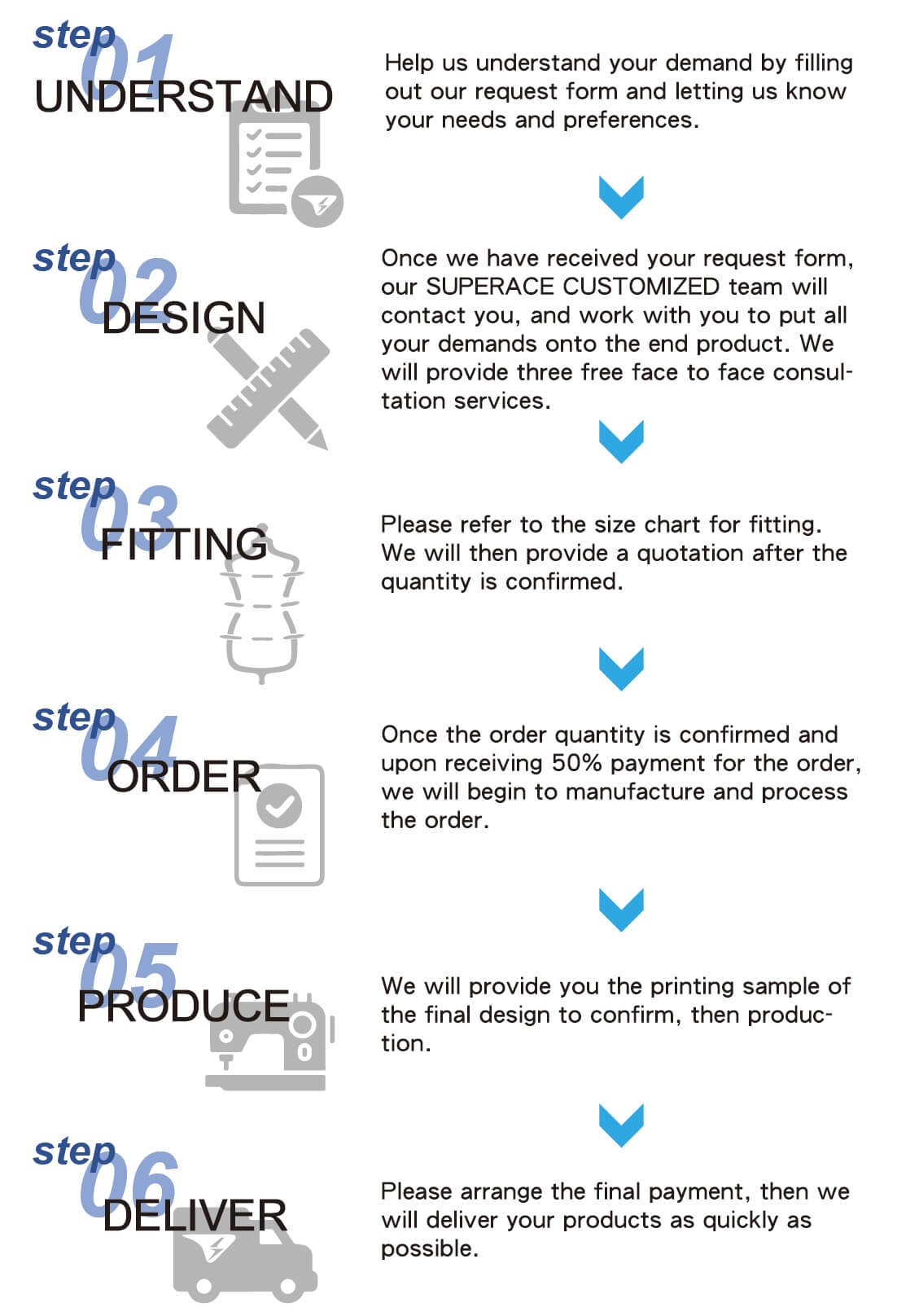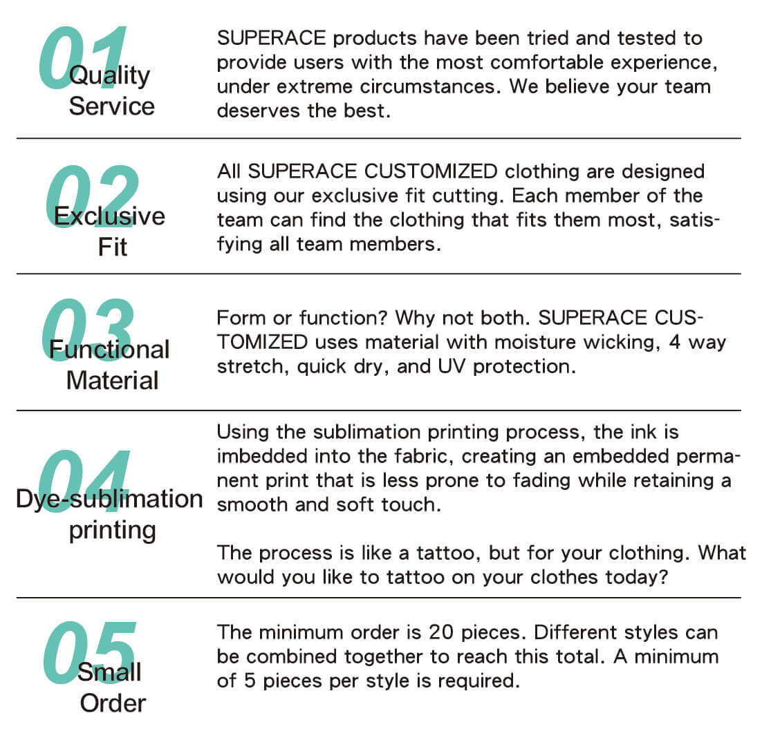 SUPERACE brand LOGO will appear in the most suitable position in your customized products.